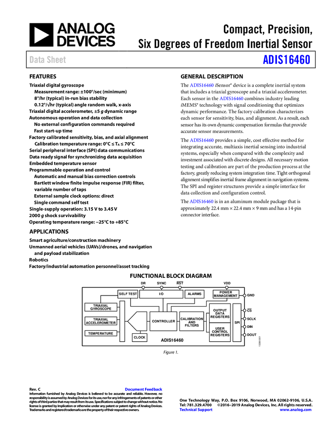 ADIS16460 Compact, Precision, Six Degrees of Freedom Inertial Sensor