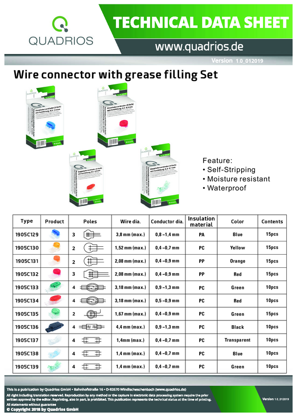 1905C134 Quadrios 1905C134 Złącze jednożyłowe elastyczny: 0.50-0.90 mm² stała: 0.50-...