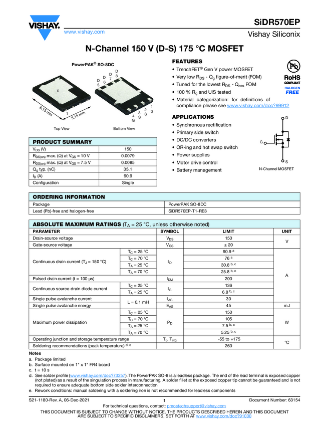 SiDR570EP N-Channel 150 V (D-S) 175 °C MOSFET