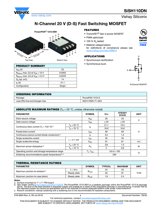 SiSH110DN N-Channel 20 V (D-S) Fast Switching MOSFET