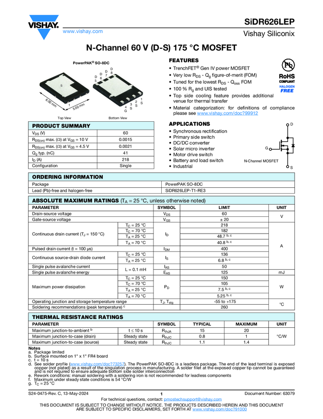 SiDR626LEP N-Channel 60 V (D-S) 175 °C MOSFET