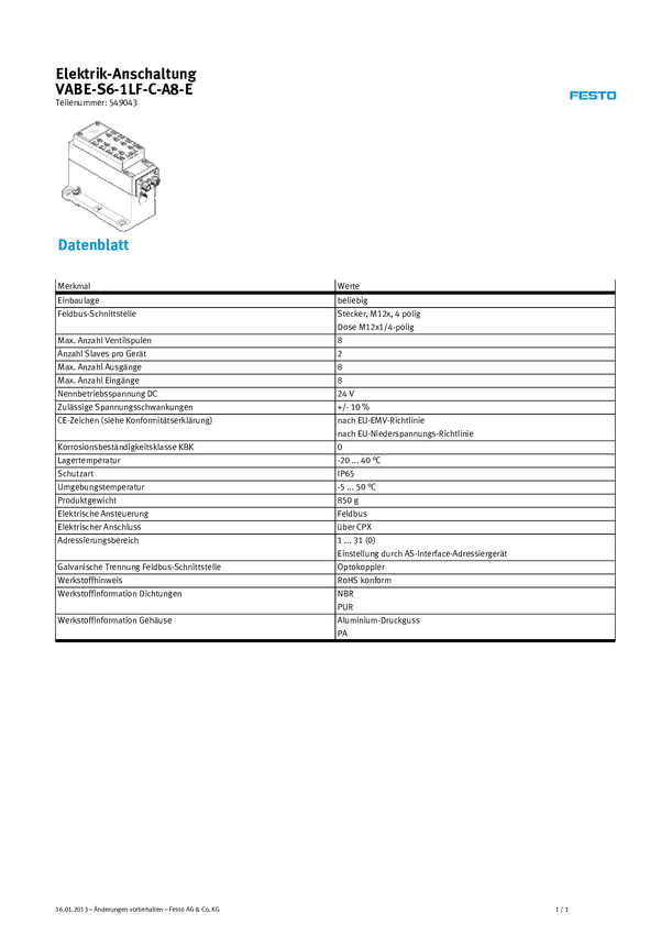 549043 Akcesorium FESTO VABE-S6-1LF-C-A8-E 549043 1 szt.