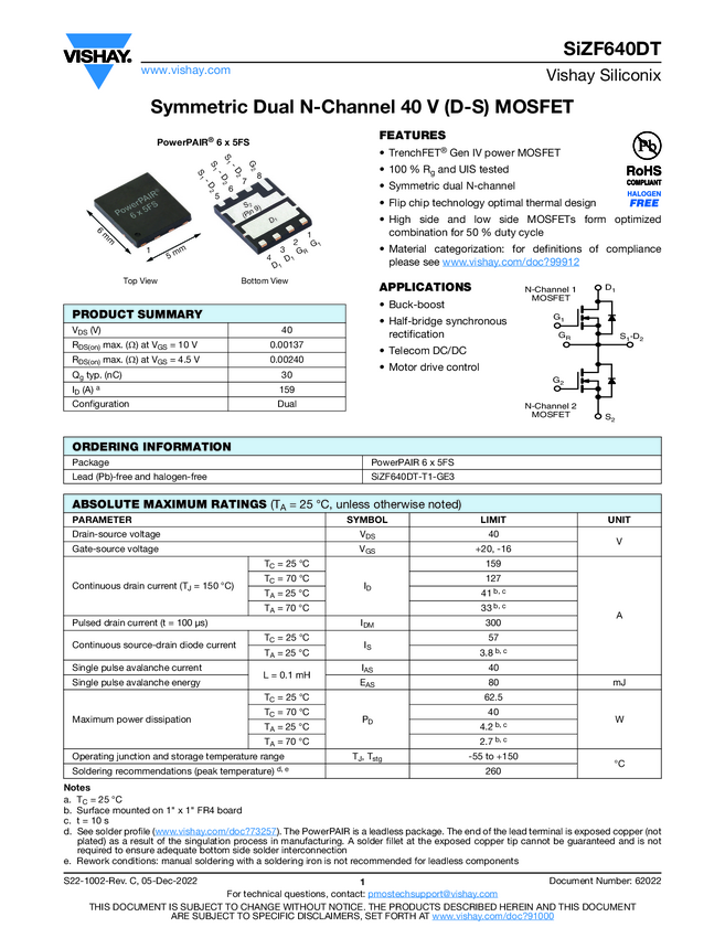 SiZF640DT Symmetric Dual N-Channel 40 V (D-S) MOSFET