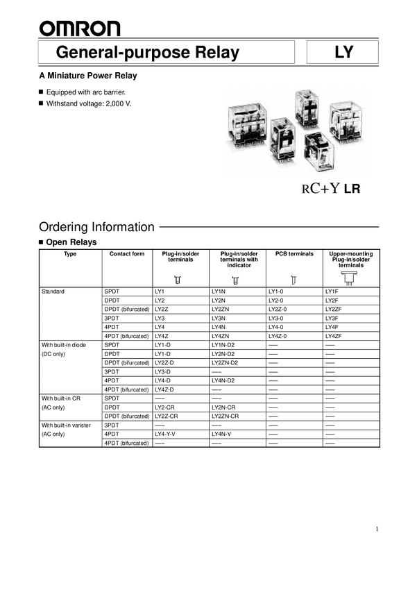 Przekaźnik; elektromagnetyczny; LY2 220/240VAC; 230V AC; 10A; 110VAC; DPDT 2 styki przełączne; do gniazda; OMRON; LY2-N-220/240AC; LY2-220/240AC; RoHS