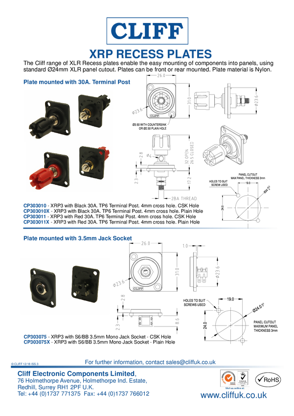 CP303010X Cliff CP303010X Złącze męskie głośnikowe CP303010X, 1 szt.