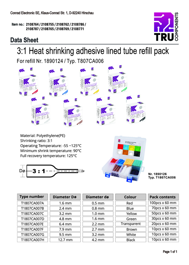 T1807CA007A Rurka termokurczliwa z klejem TRU COMPONENTS T1807CA007A Współczynnik skurc...