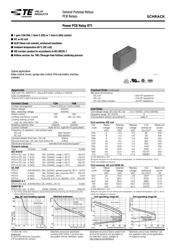 Przekaźnik; elektromagnetyczny; RT334024; SPST-NO 1 styk zwierny; 24V DC; 16A; 250VAC; THT; 29x15,7x12,7mm; TE Connectivity; RoHS
