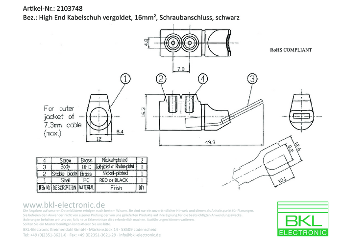 0103040 BKL Electronic 0103040 Złącze widełkowe 16 mm² z częściową izolacją czarny...