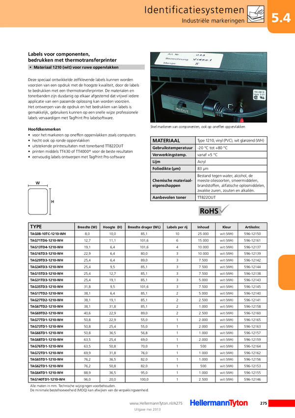 596-12155 Etykieta do druku laserowego HellermannTyton TAG64TD1-1210-WH-1210-WH 596-1...