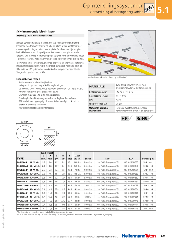 594-01104 Etykiety do drukarki termotransferowej HellermannTyton TAG02LA4-1104-WHCL-1...