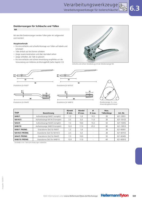 621-10103 Narzędzie do obróbki węży izolacyjnych HellermannTyton NA1K/3-ML 621-10...
