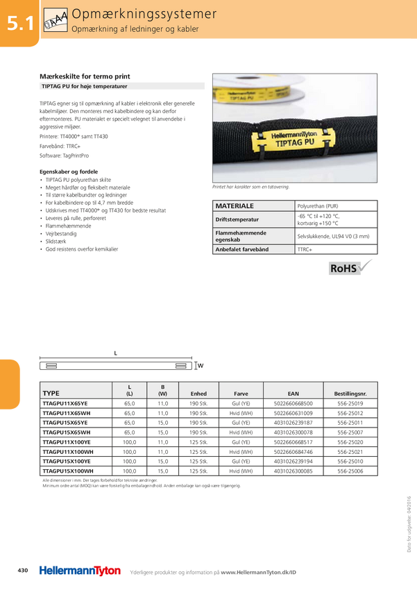 556-25012 Znacznik HellermannTyton TTAGPU11X65WH-PUR-WH (190) 556-25012, 1 szt.