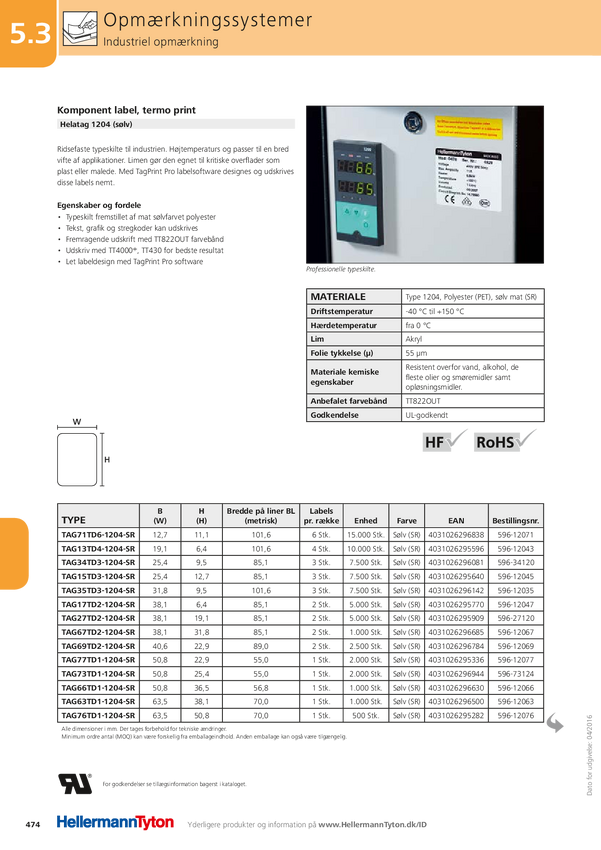 Etykieta do druku laserowego HellermannTyton TAG27TD2-1204-SR-1204-ML 596-27120, 5000 szt.