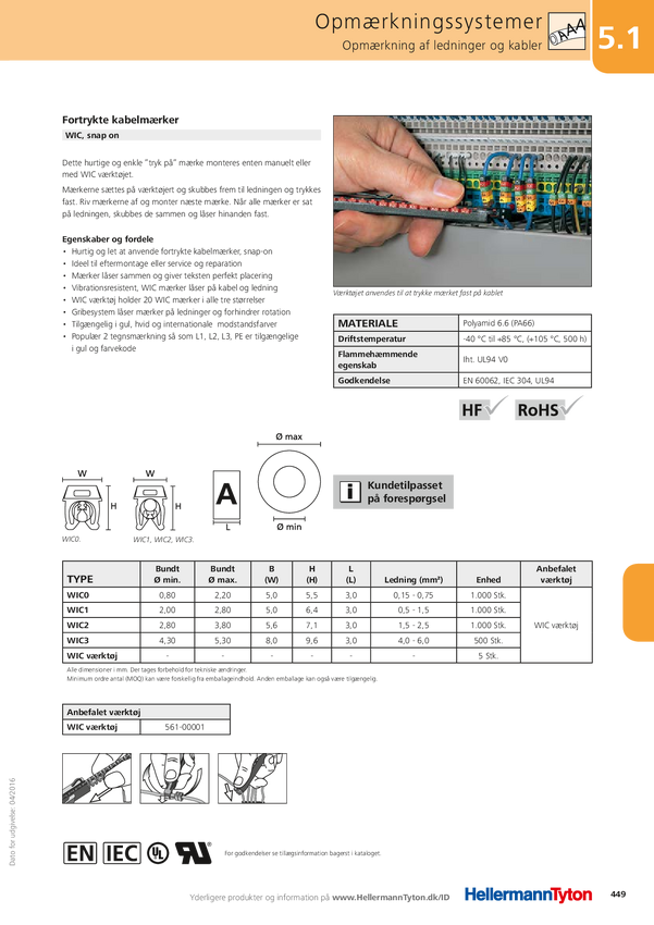 561-00624 Oznacznik kablowy HellermannTyton WIC0-2-PA66-YE 561-00624, 200 szt.