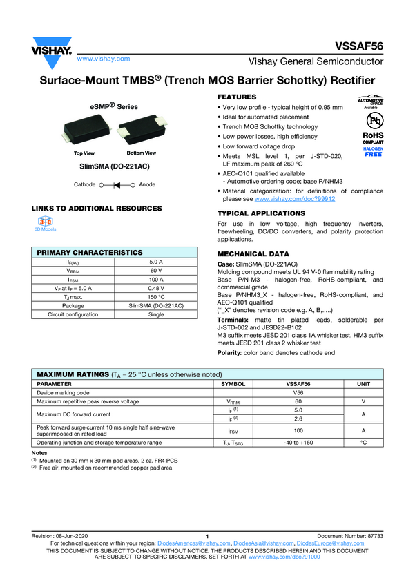 VSSAF56 Surface-Mount TMBS® (Trench MOS Barrier Schottky) Rectifier