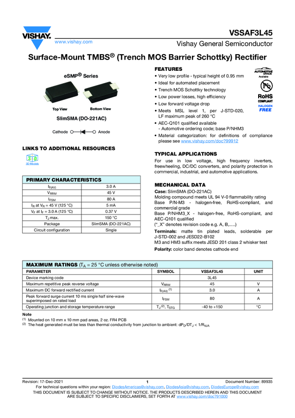 VSSAF3L45 Surface-Mount TMBS® (Trench MOS Barrier Schottky) Rectifier