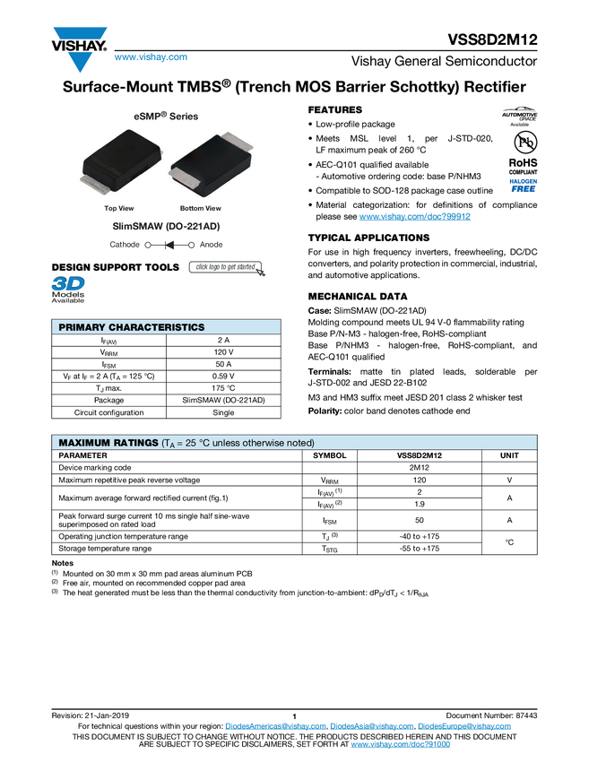 VSS8D2M12 Surface-Mount TMBS® (Trench MOS Barrier Schottky) Rectifier