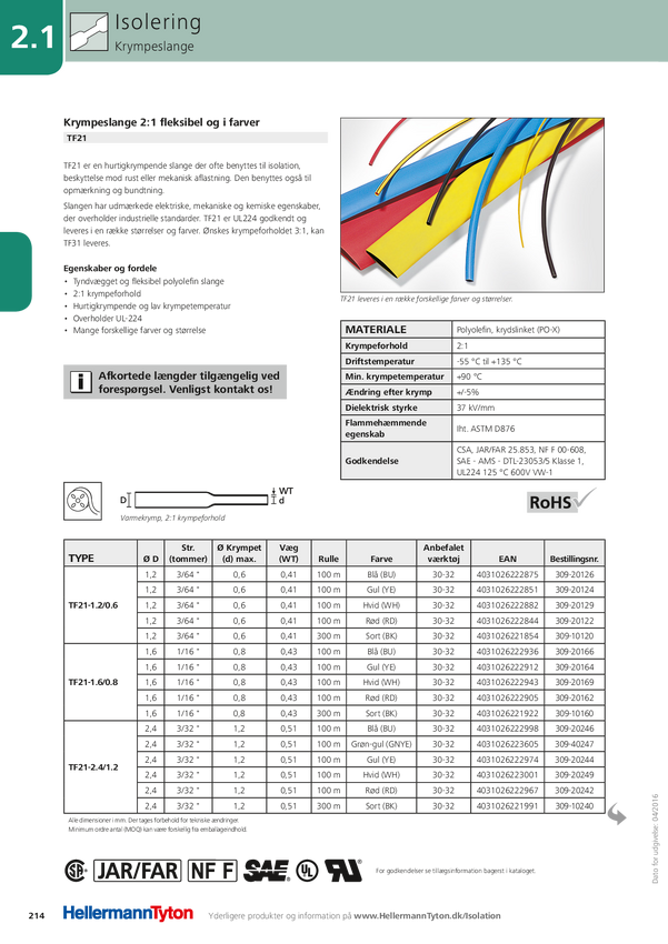 309-20244 HellermannTyton 309-20244 Rurka termokurczliwa bez kleju TF21-2.4/1.2-P...