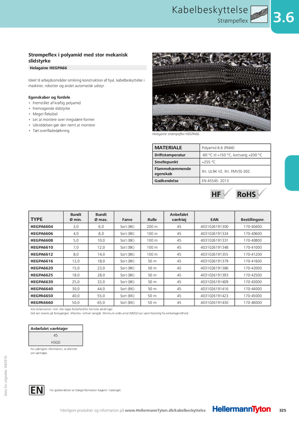 170-42000 Wąż zbrojony HellermannTyton HEGPA6620-PA66-BK 170-42000, 15 do 23 mm, 50 m
