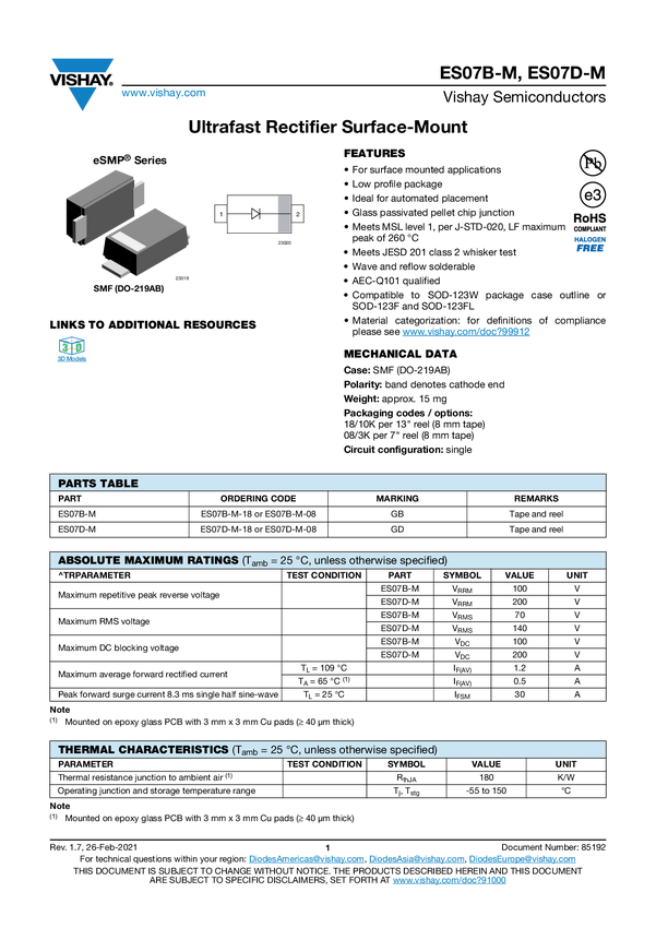 ES07B-M Ultrafast Rectifier Surface-Mount