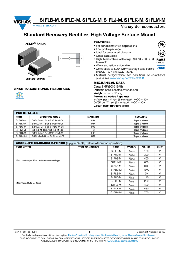 S1FLM-M Standard Recovery Rectifier, High Voltage Surface Mount