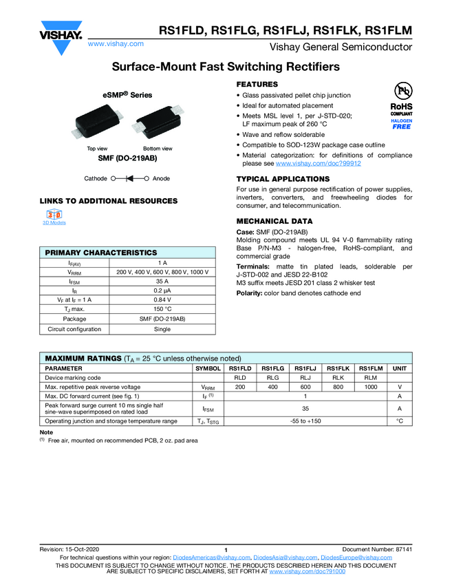 RS1FLJ Surface-Mount Fast Switching Rectifiers