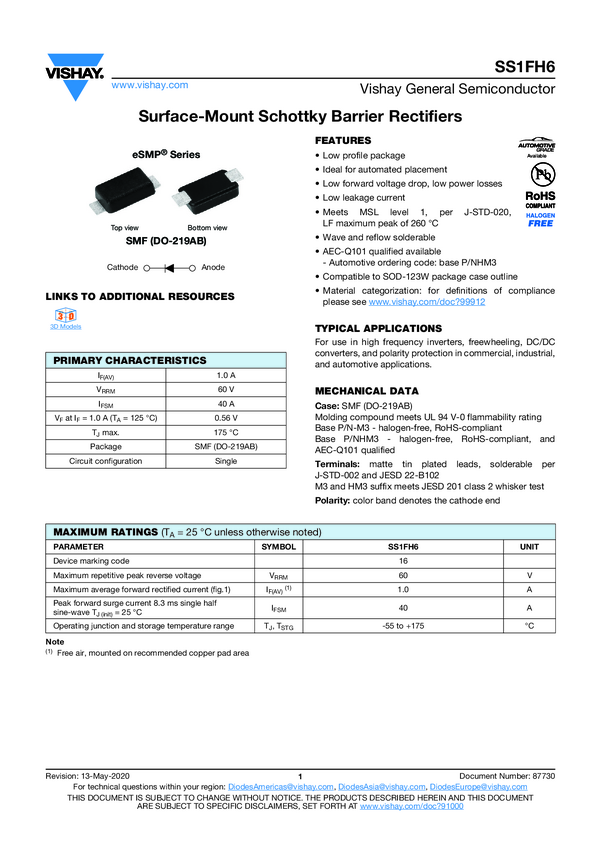 SS1FH6 Surface-Mount Schottky Barrier Rectifiers