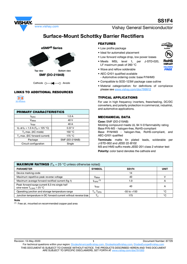 SS1F4 Surface Mount Schottky Barrier Rectifiers