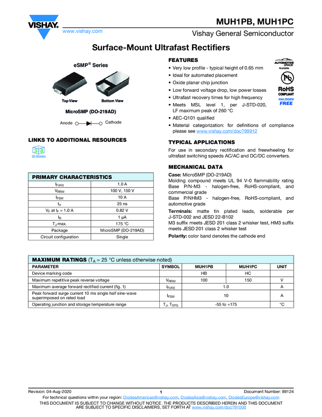 MUH1PC Surface-Mount Ultrafast Rectifiers