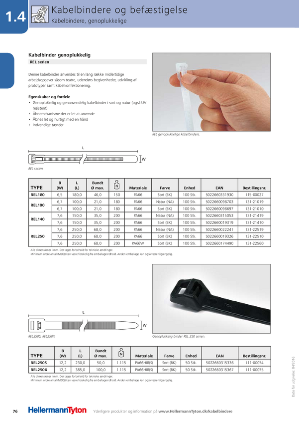 Opaska kablowa HellermannTyton REL140-PA66-NA 131-21419, 150 mm, poliamid, 100 szt.