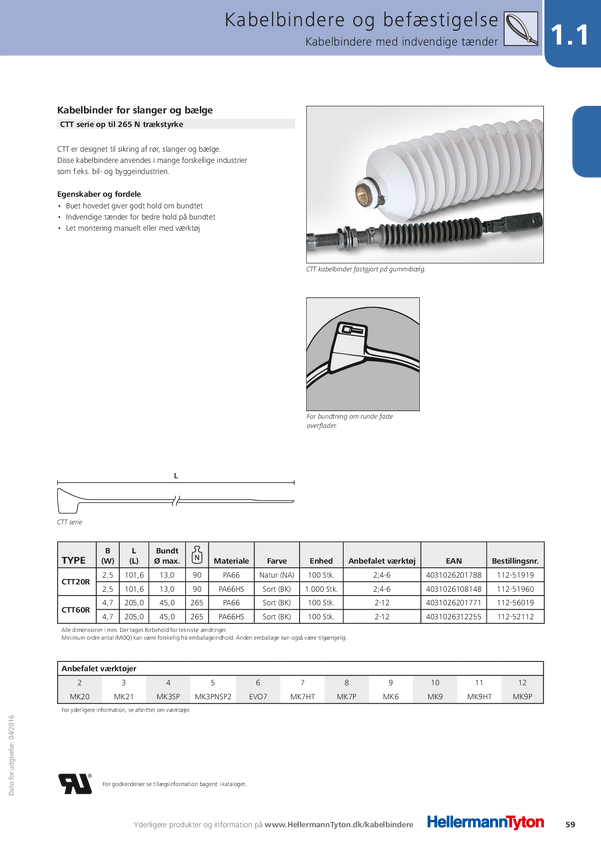 112-51919 Opaska kablowa HellermannTyton CTT20R-PA66-NA 112-51919, 101.60 mm, poliami...