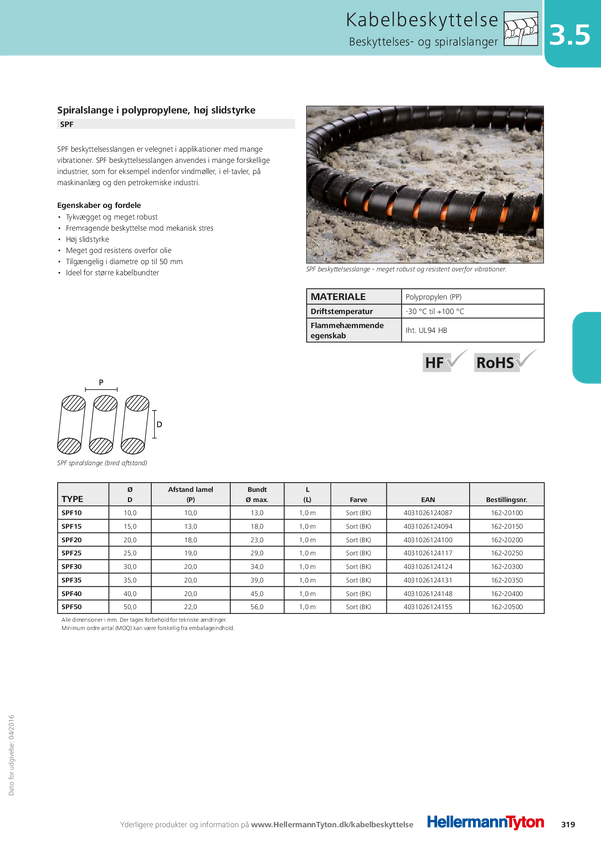 162-20500 Wąż spiralny HellermannTyton SPF50-PP-BK, czarny, 1 m