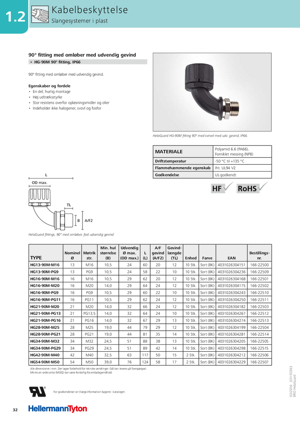 166-22503 Złącze śrubowe do węża HellermannTyton HG21-90M-M20-PA66/NPB-BK 166-225...