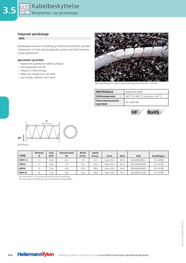 161-42300 Wąż spiralny HellermannTyton SBPA16-PA6-NA (30), naturalny, 30 m
