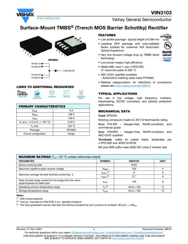 V9N3103 Surface-Mount TMBS® (Trench MOS Barrier Schottky) Rectifier