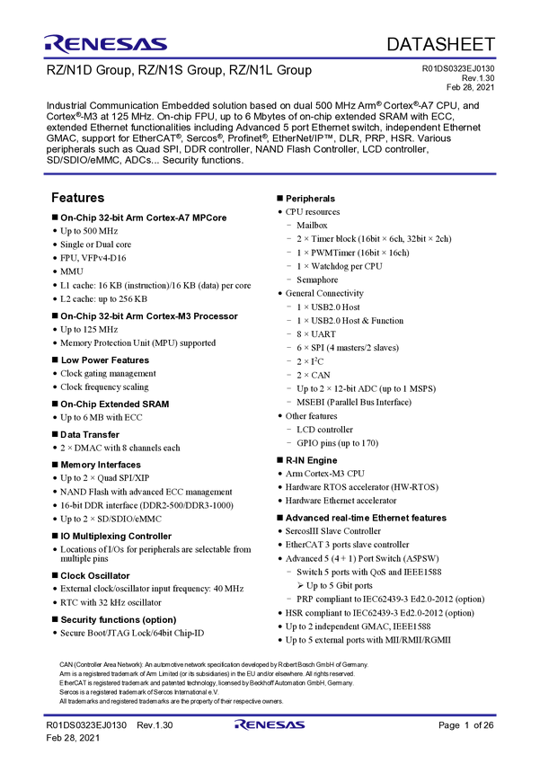 RZ/N1D Microprocessors Featuring 5 Ethernet Ports and Latest Redundancy Protocol f...