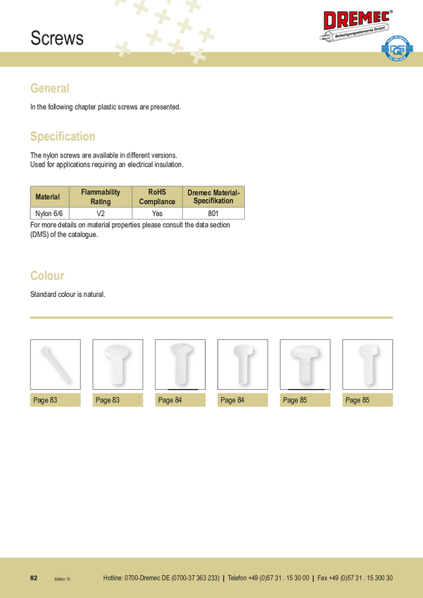 Śruba; M3x10; DR8G206M3X10; 10mm; skok gwintu: 0,5; Łeb: walcowy; Phillips(+); poliamid; ISO 7045; DREMEC; RoHS; opakowanie/100szt