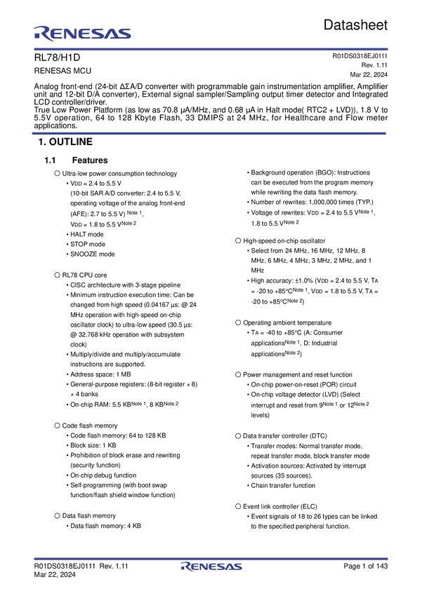 RL78/H1D Microcontrollers for Sensing Transducers in Healthcare Devices and Optimize...