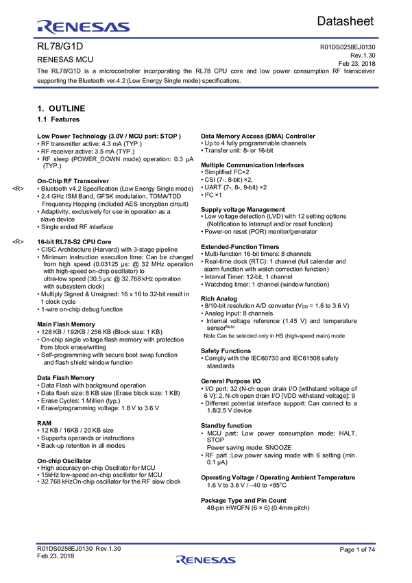 RL78/G1D Bluetooth Low Energy Microcontrollers for Smart Connectivity