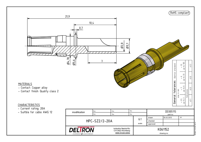 HPC-SZ2/2-20A Deltron Connectors Deltron HPC-SZ2/2-20A Styki męskie wysokoprądowe 1 s...