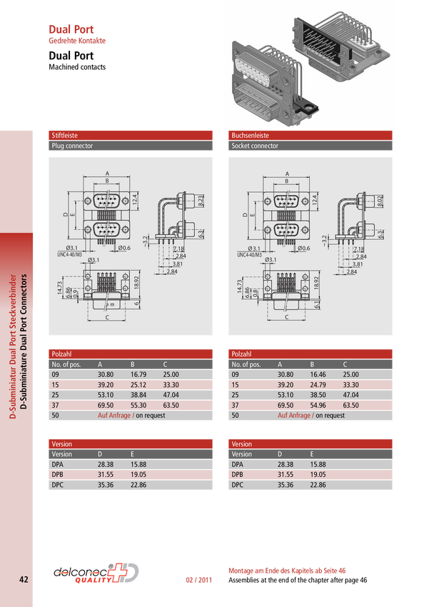 DPB 37SN70/37SN70 Deltron Connectors DPB 37SN70/37SN70 Złącze męskie podwójne D-Sub 180 °...