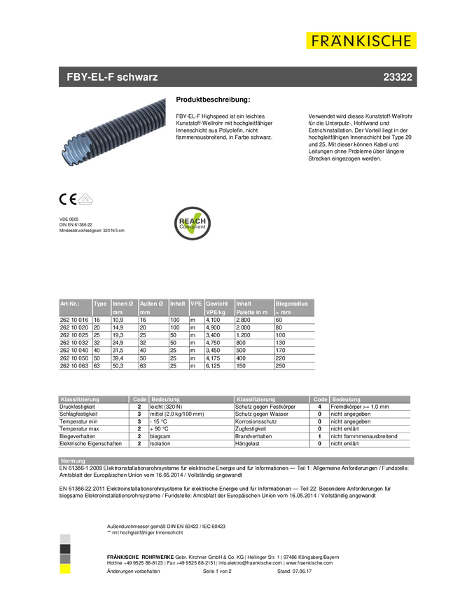 26210063 Fränkische Rohrwerke 26210063 FBY-EL-F 63 sw Wąż czarny 50.3 mm 1 szt.
