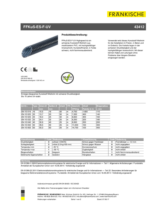 25410020 Fränkische Rohrwerke 25410020 FFKuS-ES-F-UV20 sw Wąż czarny 13.7 mm 1 szt...