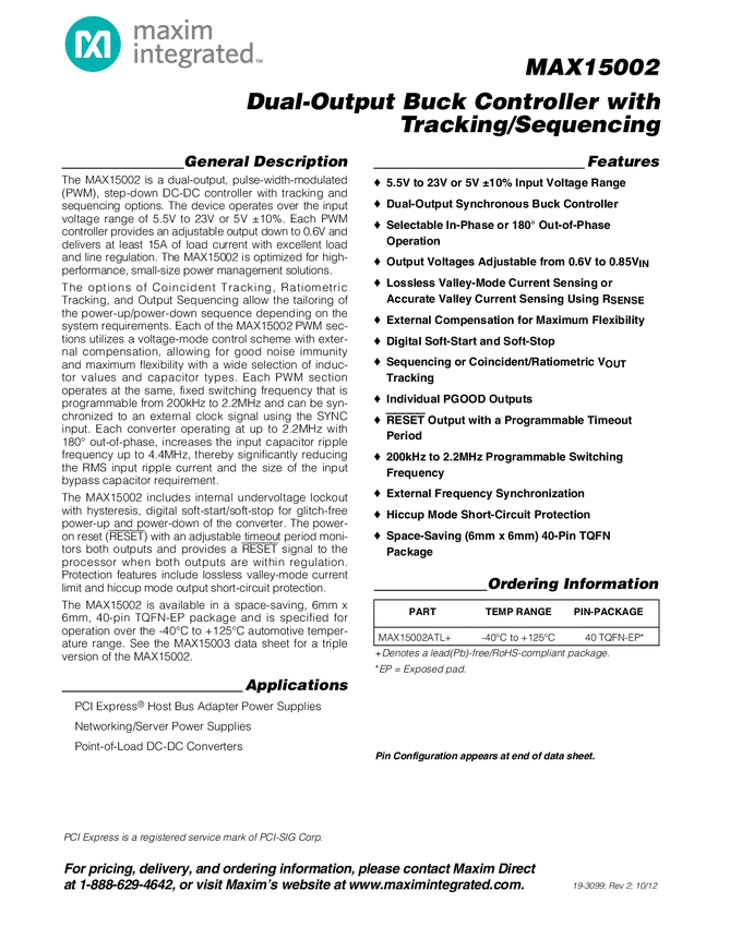 MAX15002 Dual-Output Buck Controller with Tracking/Sequencing