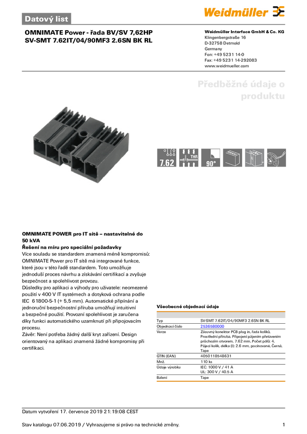 2536580000 Weidmüller 2536580000 Złącze męskie PCB Łączna ilość styków 4 Ilość rzędów...