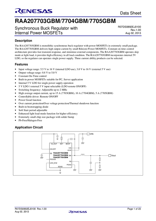RAA207703GBM Synchronous Buck Regulator with Internal Power MOSFETs