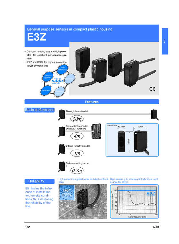 Czujnik; fotoelektryczny; E3Z-R61; NPN; Dark-ON; Light-ON; 0,1-4m; 12V-24V DC; 100mA; prostopadłościenny; z przewodem 2mb; z lustrem; RoHS