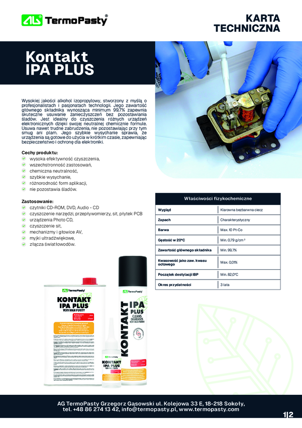 Alkohol izopropylowy; izopropanol; czyszczący; Kontakt IPA/1L; 1l; płyn; metalowa puszka; AG Termopasty; AGT-003
