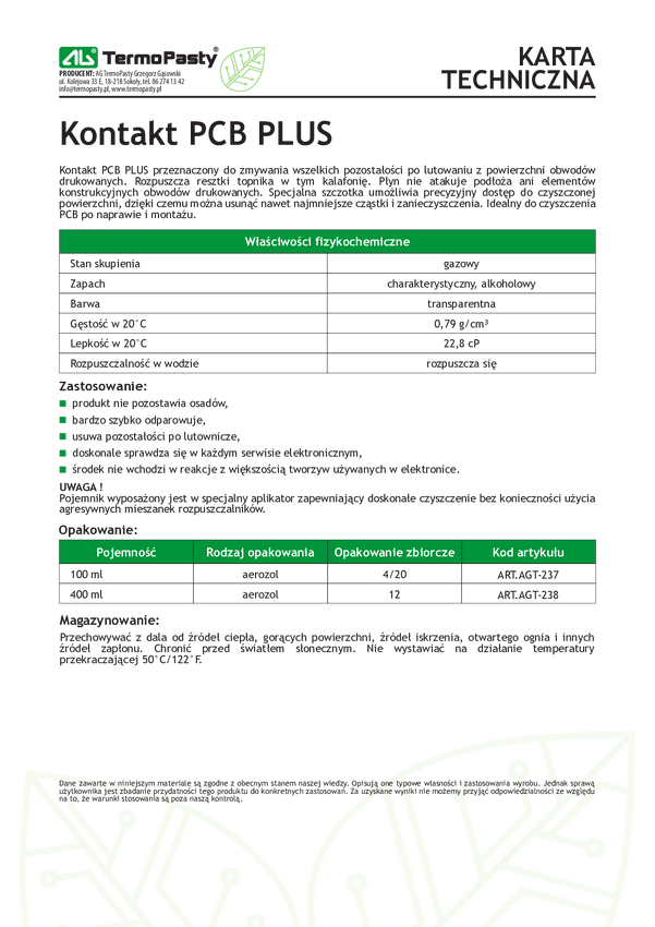 Zmywacz PCB; myjący; czyszczący; PCB PLUS; 400ml; płyn; metalowa puszka; AGT-238; AG Termopasty