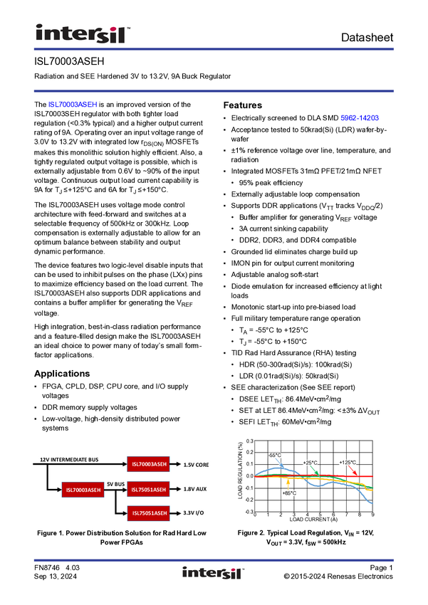 ISL70003ASEH Radiation and SEE Tolerant 3V to 13.2V, 9A Buck Regulator